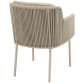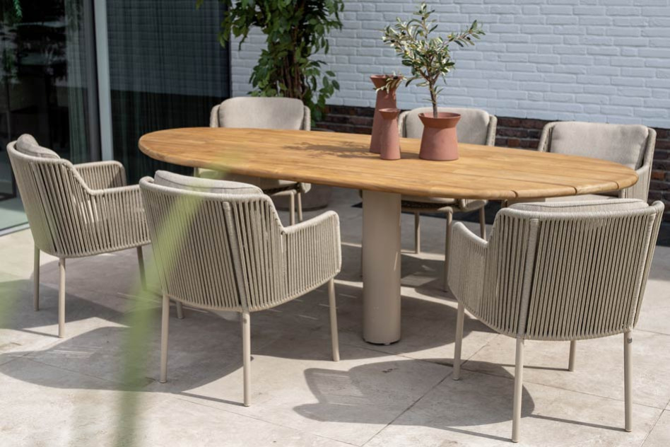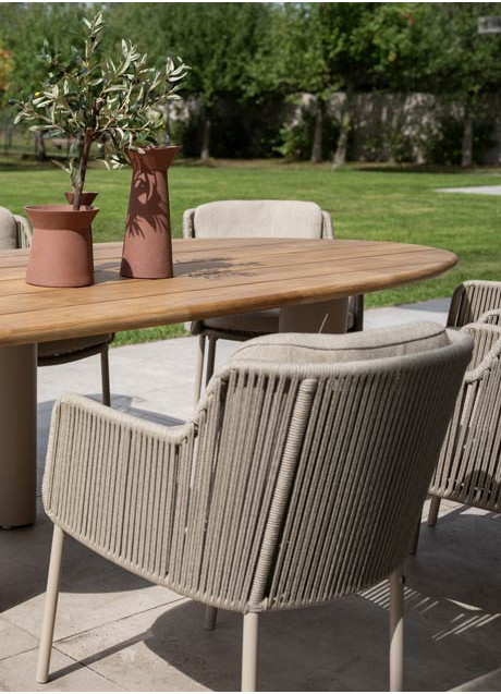 | Korte omschrijving | De Bernini Dining Chair in warme latte tint combineert zomers comfort met een modern design. Het stevige frame van gecoat RVS is omhuld met met de hand gevlochten rope in een natuurlijke beige-latte kleur, wat de stoel een stijlvolle en rustgevende uitstraling geeft. De meegeleverde weerbestendige kussens bieden een zacht zitcomfort en zijn bestand tegen zon, regen en temperatuurverschillen. Dankzij de ergonomische rugleuning geniet je moeiteloos van lange, ontspannen diners buiten. De Bernini Dining Chair laat zich perfect combineren met een van onze op maat gemaakte tuintafels voor een harmonieuze, zomerse buitenbeleving. |