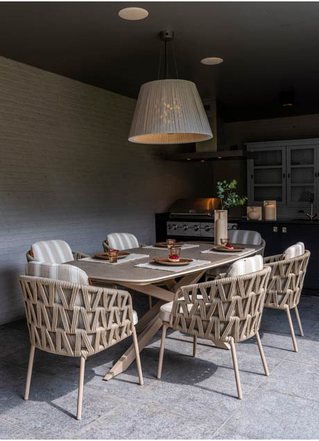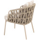 | Korte omschrijving | De Beverly Dining Chair combineert comfort en stijl voor je buitenruimte. Het stevige frame van gecoat aluminium in de chique latte kleur is omhuld met met rope in een beige-latte tint, wat de stoel een warme uitstraling geeft. De zacht gevulde, weerbestendige kussens zorgen voor optimaal zitcomfort, ideaal voor lange zomerse diners of gezellige momenten in de tuin. Het subtiel afgeronde ontwerp van de stoel ondersteunt een ergonomische zithouding en voegt een luxe uitstraling toe. De Beverly dining stoel is perfect te combineren met één van onze op maat gemaakte tafel, zodat je een complete en uitnodigende eetplek creëert in je buitenomgeving, klaar voor zomerse ontspanning en samenzijn. |