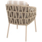 | De Beverly Dining Chair combineert comfort en stijl voor je buitenruimte. Het stevige frame van gecoat aluminium in de chique latte kleur is omhuld met met rope in een beige-latte tint, wat de stoel een warme uitstraling geeft. De zacht gevulde, weerbestendige kussens zorgen voor optimaal zitcomfort, ideaal voor lange zomerse diners of gezellige momenten in de tuin. Het subtiel afgeronde ontwerp van de stoel ondersteunt een ergonomische zithouding en voegt een luxe uitstraling toe. De Beverly dining stoel is perfect te combineren met één van onze op maat gemaakte tafel, zodat je een complete en uitnodigende eetplek creëert in je buitenomgeving, klaar voor zomerse ontspanning en samenzijn. | |
