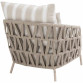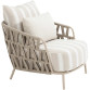 | Korte omschrijving | De Beverly Living Chair nodigt uit tot ultiem loungen in je tuin of op het terras. Het stevige frame van gecoat aluminium in latte kleur is omhuld met met rope in een warme beige-latte tint, wat de stoel een chique en warme uitstraling geeft. De drie dik gevulde, weerbestendige kussens zorgen voor heerlijk zitcomfort en ondersteunen een ontspannen zithouding. Het ruime, uitnodigende ontwerp maakt deze lounge chair ideaal voor lange zomermiddagen of -avonden. Combineer de Beverly Living Chair met een op maat gemaakte salontafel om een complete, stijlvolle loungehoek te creëren waar comfort en design samenkomen voor onvergetelijke buitenmomenten. |