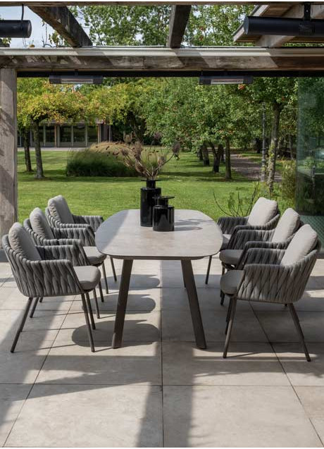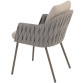 | Korte omschrijving | De Cannes Dining Chair in warme Terre kleur brengt rust en stijl samen aan jouw eettafel buiten. Met zijn verfijnde rope afwerking en stevige aluminium frame straalt deze tuinstoel kwaliteit en comfort uit. Het speelse touwpatroon geeft de stoel een luchtige uitstraling, terwijl de dikke, weerbestendige zit- en rugkussens zorgen voor optimaal zitgemak, perfect voor lange zomeravonden in de tuin. De materialen zijn duurzaam en weerbestendig, ideaal voor buitengebruik. Combineer de Cannes Dining Chair met een van onze op maat gemaakte tuintafels voor een harmonieuze en stijlvolle buitenruimte waar je eindeloos kunt tafelen. |