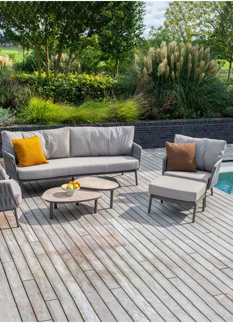 4 Seasons Outdoor tuinmeubelen worden gemaakt om het hele jaar door van te kunnen genieten. Dat merk je bijvoorbeeld aan het geweldige comfort van onze tuinsets en loungesets, maar dat merk je ook als je geen gebruik maakt van je tuinmeubels. De kussens in alle 4SO tuinmeubelen zijn namelijk weerbestendig, zodat je ze gewoon in je tuin set kunt laten liggen. Onze tuinkussens zijn altijd bij onze tuinmeubelen inbegrepen. 4 Seasons Outdoor kussens voelen comfortabel aan, bijna zoals de bank of de stoelen die binnen staan. Dat komt omdat bijna al onze kussens een kussenhoes hebben van ‘Olefin’ stof. Deze stof heeft allerlei unieke eigenschappen. De grondstof voor het maken van olefin is olie. Daar wordt al in een vroeg stadium de kleurstof aan toegevoegd zodat deze in de kern aanwezig is. Dat maakt de stof zo kleurvast, Uv-bestendig en waterafstotend. Zo wordt Olefin bijvoorbeeld ook gebruikt voor technische sportkleding en in de auto-industrie. |