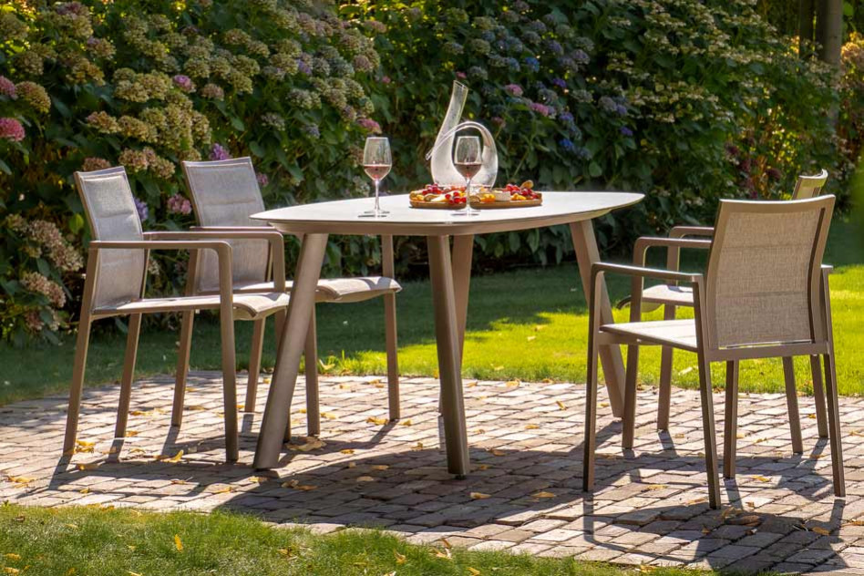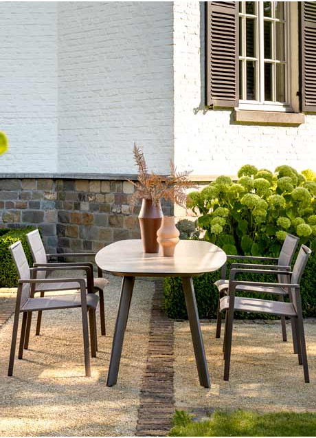 Aluminium is populair als basismateriaal voor tuinmeubelen. Aluminium tuinmeubelen hebben een stijlvolle uitstraling, zijn licht van gewicht en onderhoudsvriendelijk. Daarnaast is het meer kneedbaar en elastischer dan bijvoorbeeld staal. Dit vergemakkelijkt het productieproces, met lagere productiekosten als gevolg. Met name onze collectie stoelen bestaat uit aluminium onderdelen.