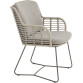 | Korte omschrijving | De Fabrice Dining Chair staat voor comfort en kwaliteit, met aandacht voor detail en een echte zomerse uitstraling. Het stevige frame met beige-grijs rope geeft de stoel een luchtige, uitnodigende look, terwijl de poten van gecoat RVS in Terre kleur zorgen voor stabiliteit en een moderne afwerking. De twee meegeleverde weerbestendige kussens in zachte,weerbestendige bouclé stof in de tint Clay bieden extra comfort en blijven mooi, zelfs tijdens warme dagen of een onverwachte zomerse bui. Deze tuinstoel is ideaal voor lange diners in de zon en combineert perfect met een op maat gemaakte tuintafel, zodat je jouw buitenruimte volledig naar wens kunt creëren. |