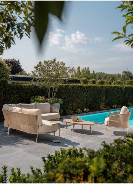 Florence 2 seater bench left arm latte with 3 cushions De Florence 2-Seater Bench in Latte kleur brengt zomerse rust en stijl naar je tuin. Deze modulaire loungebank met armleuning aan de linkerkant combineert een stevig frame van gecoat aluminium met strak geweven rope voor een moderne en comfortabele uitstraling. De drie meegeleverde weerbestendige kussens zorgen voor een zachte, luxe zit en maken ontspannen buiten genieten eenvoudig. De lichte, frisse kleur Latte geeft je terras een zomerse uitstraling en past perfect bij natuurlijke tuinelementen. Combineer dit onderdeel met de andere modules uit de Florence latte loungebank en een op maat gemaakte salontafel voor een complete loungeopstelling. Duurzaam, comfortabel en stijlvol, ideaal voor lange zomerdagen in de tuin. Florence corner latte with 3 cushions Het Florence Corner element in Latte kleur vormt het middelpunt van je modulaire Florence loungeset en verbindt moeiteloos de linker- en rechterdelen tot één comfortabele hoekopstelling. Deze stijlvolle hoekmodule is gemaakt van een stevig en gecoat aluminium frame, omhuld met strak geweven rope wat zorgt voor een moderne en verfijnde uitstraling. De drie meegeleverde weerbestendige kussens bieden heerlijk zitcomfort, perfect voor lange, zomerse dagen in de tuin. De lichte, frisse kleur Latte en beige tinten brengen een ontspannen sfeer in je buitenruimte en combineert prachtig met natuurlijke tinten. Combineer deze hoekmodule met andere onderdelen uit de Florence-collectie en een op maat gemaakte salontafel voor een complete, stijlvolle loungeset. Florence 2 seater bench right open end with 3 cushions De Florence 2-Seater Bench met open einde is een stijlvolle toevoeging aan de modulaire Florence loungeset. Dit lounge-element met open zijde aan de rechterkant creëert een ruimtelijk en ontspannen gevoel, ideaal om languit te genieten van zomerse dagen. Het frame van gecoat aluminium is omhuld met hand geweven rope, wat zorgt voor een moderne uitstraling en duurzame kwaliteit. De drie meegeleverde weerbestendige kussens bieden optimaal comfort, zijn zacht en weerbestendig. Combineer dit element met andere modules uit de Florence-collectie en een op maat gemaakte salontafel voor een complete loungehoek. De warme tint Terre past prachtig bij natuurlijke tuinelementen en maakt van je tuin een heerlijke plek om te ontspannen. |