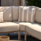 | Korte omschrijving | Deze Florence hoek-loungeset met loungestoel is een ruime en comfortabele loungeset voor buiten, ideaal voor lange zomerdagen in de tuin of op het terras. De set bestaat uit een modulaire hoekbank en een bijpassende loungestoel, gemaakt met een aluminium frame met een latte kleur coating. Om het frame is eveneens latte kleurig rope geweven waardoor de loungeset een warme uitstraling heeft. De dikke, zachte kussens worden standaard meegeleverd en nodigen uit tot ontspannen loungen en maken het buitenleven extra plezierig. Dankzij de weerbestendige materialen kan de loungeset de hele zomer buiten blijven staan. De warme latte-kleur versterkt de zomerse sfeer en creëert een uitnodigende, sfeervolle plek om te genieten van comfort en ontspanning. |