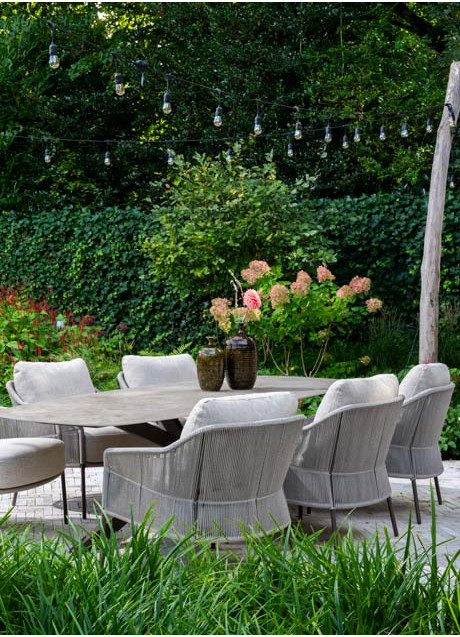 4 Seasons Outdoor tuinmeubelen worden gemaakt om het hele jaar door van te kunnen genieten. Dat merk je bijvoorbeeld aan het geweldige comfort van onze tuinsets en loungesets, maar dat merk je ook als je geen gebruik maakt van je tuinmeubels. De kussens in alle 4SO tuinmeubelen zijn namelijk weerbestendig, zodat je ze gewoon in je tuin set kunt laten liggen. Onze tuinkussens zijn altijd bij onze tuinmeubelen inbegrepen. 4 Seasons Outdoor kussens voelen comfortabel aan, bijna zoals de bank of de stoelen die binnen staan. Dat komt omdat bijna al onze kussens een kussenhoes hebben van ‘Olefin’ stof. Deze stof heeft allerlei unieke eigenschappen. De grondstof voor het maken van olefin is olie. Daar wordt al in een vroeg stadium de kleurstof aan toegevoegd zodat deze in de kern aanwezig is. Dat maakt de stof zo kleurvast, Uv-bestendig en waterafstotend. Zo wordt Olefin bijvoorbeeld ook gebruikt voor technische sportkleding en in de auto-industrie. |