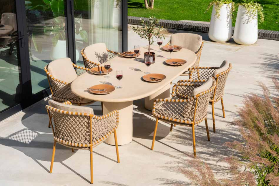 Wicker en rope is een uit hoogwaardig kunststof vervaardigde vezel gebaseerd op de looks van rotan. Waar voorheen deze vezels, afkomstig van de rotanpalm uit de subtropen werden gebruikt, heeft wicker deze ietwat gevoelige vezel vervangen. Het gebruik van deze kunststof draad is bijzonder veelzijdig. Wicker is beschikbaar in diverse kleuren, texturen en diktes. |