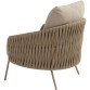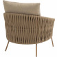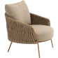 | Korte omschrijving | De Molina Living Chair brengt comfort en stijl samen in een uitnodigend ontwerp dat perfect past in elke tuin of op elk terras. Het stevige frame van gecoat RVS in een warme amberkleur vormt de basis waar het dik gevlochten en zachte rope omheen is geweven. De royale, weerbestendige kussens bieden uitzonderlijk zitcomfort en zijn weerbestendig zodat de stoel seizoen na seizoen mooi blijft. Dankzij de comfortabele zitdiepte en subtiele rondingen van de rugleuning is deze loungestoel ideaal om in weg te zakken tijdens lange zomeravonden. Combineer de Molina Living Chair met onze op maat gemaakte salontafels voor een set die perfect bij jou past. |