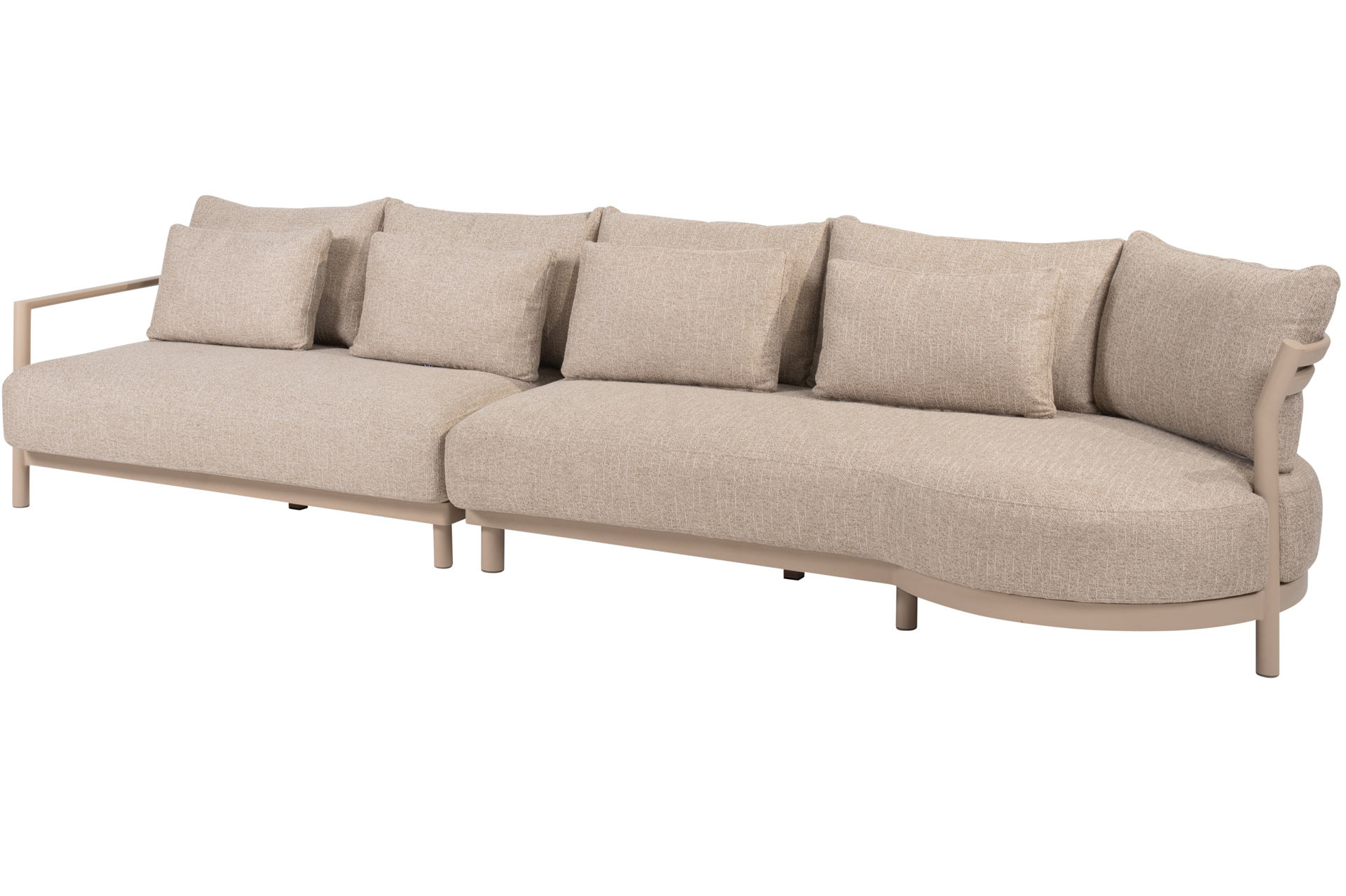 | Korte omschrijving | De Mykonos 2.5-Seater Bench Right Arm in Latte kleur combineert modern design met ultiem comfort. Het frame van gepoedercoat aluminium in een zachte latte-kleur zorgt voor een strakke, eigentijdse uitstraling en is zeer onderhoudsvriendelijk. De vijf meegeleverde weerbestendige kussens, gemaakt van hoogwaardig outdoor textiel, bieden een luxueuze zitervaring en zijn bestand tegen de weersomstandigheden. Dankzij het quick-dry foam zijn de kussens na een regenbui snel weer droog. Door de lounge elementen uit de Mykonos collectie met elkaar te verbinden creëer je een set die perfect bij jou past. Combineer de loungeset met een van onze op maat gemaakte salontafels voor een stijlvolle buitenruimte waar je heerlijk kunt ontspannen tijdens lange, zonnige dagen. |