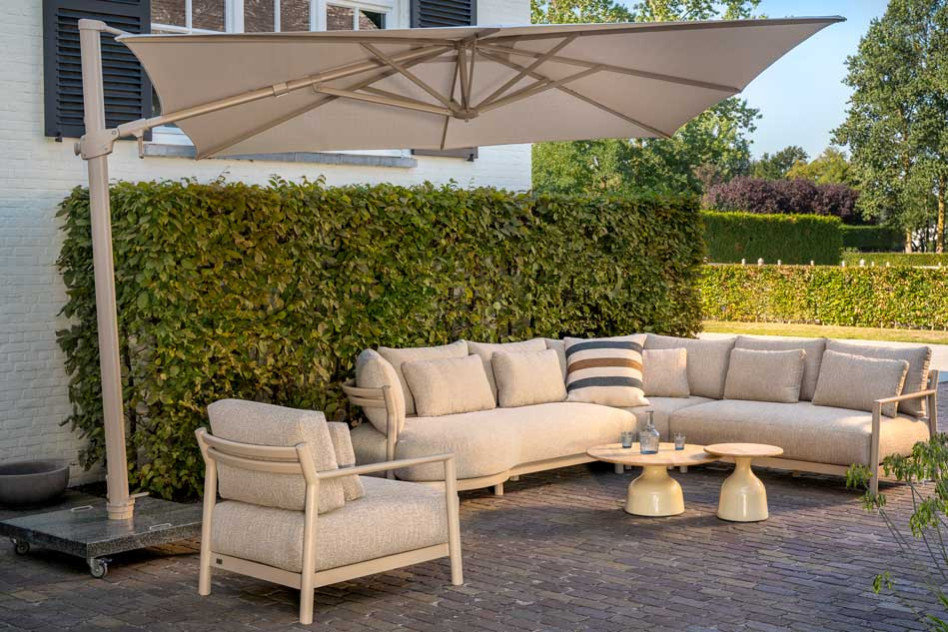 Mykonos 2.5 seater bench right arm latte with 5 cushions De Mykonos 2.5-Seater Bench Right Arm in Latte kleur combineert modern design met ultiem comfort. Het frame van gepoedercoat aluminium in een zachte latte-kleur zorgt voor een strakke, eigentijdse uitstraling en is zeer onderhoudsvriendelijk. De vijf meegeleverde weerbestendige kussens, gemaakt van hoogwaardig outdoor textiel, bieden een luxueuze zitervaring en zijn bestand tegen de weersomstandigheden. Dankzij het quick-dry foam zijn de kussens na een regenbui snel weer droog. Door de lounge elementen uit de Mykonos collectie met elkaar te verbinden creëer je een set die perfect bij jou past. Combineer de loungeset met een van onze op maat gemaakte salontafels voor een stijlvolle buitenruimte waar je heerlijk kunt ontspannen tijdens lange, zonnige dagen. Mykonos XL Corner latte with 4 cushions De Mykonos XL Corner in latte kleur vormt het stijlvolle middelpunt van jouw loungeset. Met zijn stevige frame van gepoedercoat aluminium in een warme latte-kleur straalt dit lounge-element moderne klasse uit. Het aluminium frame is weerbestendig en onderhoudsvriendelijk, ideaal om de Mykonos loungeset het hele jaar door buiten te laten staan. De vier weerbestendige kussens van hoogwaardig outdoor textiel bieden een heerlijk comfortabele zitervaring en zijn tevens weerbestendig. Dankzij dit XL hoekelement creëer je eenvoudig een gezellige hoekloungeset om te ontspannen en te genieten van de zomer. Combineer de Mykonos XL Corner met andere modules uit dezelfde collectie en een van onze op maat gemaakte salontafels voor een luxueuze, zomerse buitenlounge waar comfort en stijl samenkomen. Mykonos cuddle bench 3 seater left latte with 6 cushions De Mykonos Cuddle 3-zits bank met armleuning aan de linkerzijde biedt ultiem comfort en moderne stijl voor jouw buitenruimte. Het stevige frame van gepoedercoat aluminium in een zachte latte-kleur is onderhoudsvrij en bestand tegen de weersomstandigheden. De zes weerbestendige kussens van hoogwaardig outdoor textiel zorgen voor een luxueuze zitervaring. Dankzij het ruime en uitnodigende ontwerp is deze lounge bank ideaal om heerlijk te ontspannen of samen te genieten van lange zomerdagen. Combineer de Mykonos Cuddle Bench met andere modules uit de Mykonos collectie en een van onze op maat gemaakte salontafels voor een stijlvolle en comfortabele loungeset. Mykonos living chair latte with 3 cushions De Mykonos Living Chair in latte kleur combineert strak design met ultiem comfort voor buiten. Het gepoedercoate aluminium frame in een warme latte-kleur is zeer onderhoudsvriendelijk en bestand tegen alle weersomstandigheden, waardoor de stoel perfect is voor langdurig buitengebruik. De drie weerbestendige kussens van hoogwaardig outdoor textiel bieden een heerlijke zitervaring. Deze stijlvolle lounge tuinstoel vormt een ideale basis voor jouw buitenlounge en is perfect te combineren met onze op maat gemaakte salontafels en de modulaire loungeset uit de Mykonos collectie. Geniet van lange zomerdagen in comfort en stijl met de Mykonos Living Chair. |