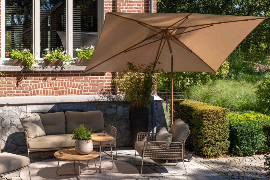 | Korte omschrijving | Met de Azzurro parasol creëer je eenvoudig een schaduwrijke oase in je tuin. Het rechthoekige ontwerp met de afmetingen 200 x 300 cm biedt veel schaduw en is ideaal voor zowel dining sets als loungesets. Het polyester parasoldoek in de kleur sand is UV-werend en duurzaam, perfect voor langdurig gebruik in de buitenlucht. Het stijlvolle woodlook frame voegt een natuurlijke en warme touch toe aan je buitenruimte. Dankzij het praktische en robuuste ontwerp is deze parasol makkelijk te gebruiken en zorgt hij voor comfort tijdens zonnige dagen. Maak je tuin compleet met de Azzurro parasol en geniet volop van de zomer. |