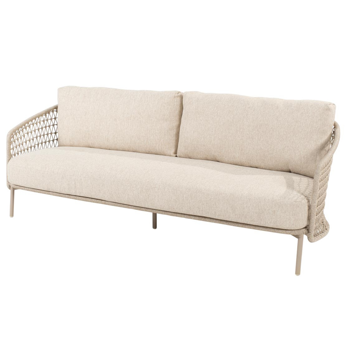 Het zitgedeelte heeft een stevig frame waar het elegante rope omheen is geweven. De ronde draden zijn voorzien van een kunststof kern welke wordt omhult door een acryl stof vergelijkbaar met de weerbestendige tuinkussens. Hierdoor voelt het rope zacht aan en is het toch weerbestendig, Uv-bestendig en zeer kleurvast. De poten zijn gemaakt van RVS in 304 kwaliteit. Deze poten worden vervolgens voorzien van een poedercoating om ze optimaal te beschermen tegen de weersinvloeden zodat er nauwelijks onderhoud nodig is. Om voor nog meer comfort te zorgen worden standaard een rug- en zitkussen meegeleverd. Deze kussens worden voorzien van een Olefin hoes waardoor ze tevens weerbestendig zijn. Vrijwel iedere kussenhoes is afritsbaar en makkelijk te wassen in de wasmachine op 30°C.