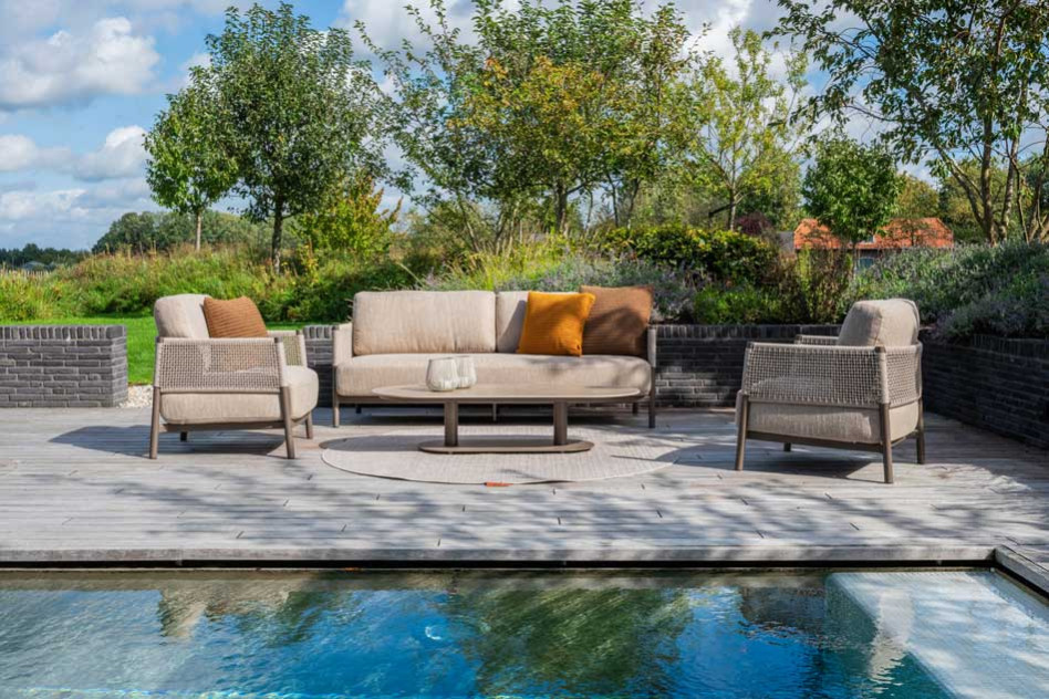 4 Seasons Outdoor tuinmeubelen worden gemaakt om het hele jaar door van te kunnen genieten. Dat merk je bijvoorbeeld aan het geweldige comfort van onze tuinsets en loungesets, maar dat merk je ook als je geen gebruik maakt van je tuinmeubels. De kussens in alle 4SO tuinmeubelen zijn namelijk weerbestendig, zodat je ze gewoon in je tuin set kunt laten liggen. Onze tuinkussens zijn altijd bij onze tuinmeubelen inbegrepen. 4 Seasons Outdoor kussens voelen comfortabel aan, bijna zoals de bank of de stoelen die binnen staan. Dat komt omdat bijna al onze kussens een kussenhoes hebben van ‘Olefin’ stof. Deze stof heeft allerlei unieke eigenschappen. De grondstof voor het maken van olefin is olie. Daar wordt al in een vroeg stadium de kleurstof aan toegevoegd zodat deze in de kern aanwezig is. Dat maakt de stof zo kleurvast, Uv-bestendig en waterafstotend. Zo wordt Olefin bijvoorbeeld ook gebruikt voor technische sportkleding en in de auto-industrie. |
