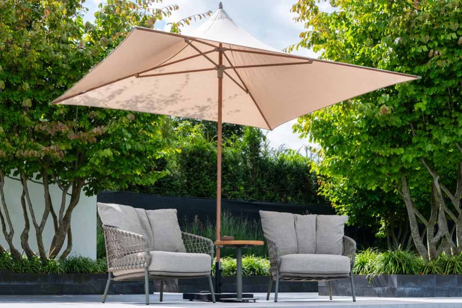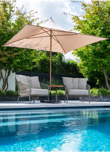 | Korte omschrijving | De vierkante Vivenda parasol 270 x 270 cm met een frame in houtlook is de ideale keuze voor je tuin of terras. Het hoogwaardige polyester parasoldoek in zandkleur biedt uitstekende bescherming tegen de zon, zodat je volop kunt genieten van je buitenruimte. Dankzij het lichte, stevige aluminium frame is de parasol gemakkelijk te verplaatsen en in- en uit te klappen, wat zorgt voor extra gemak. Het moderne design en de natuurlijke uitstraling passen perfect bij je loungeset of dining set. Creëer snel schaduw en maak van je tuin een comfortabele plek voor ontspanning, zelfs op de warmste zomerdagen. |